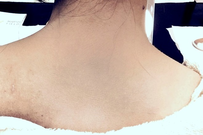背中の青色母斑のカバー例をご紹介します。