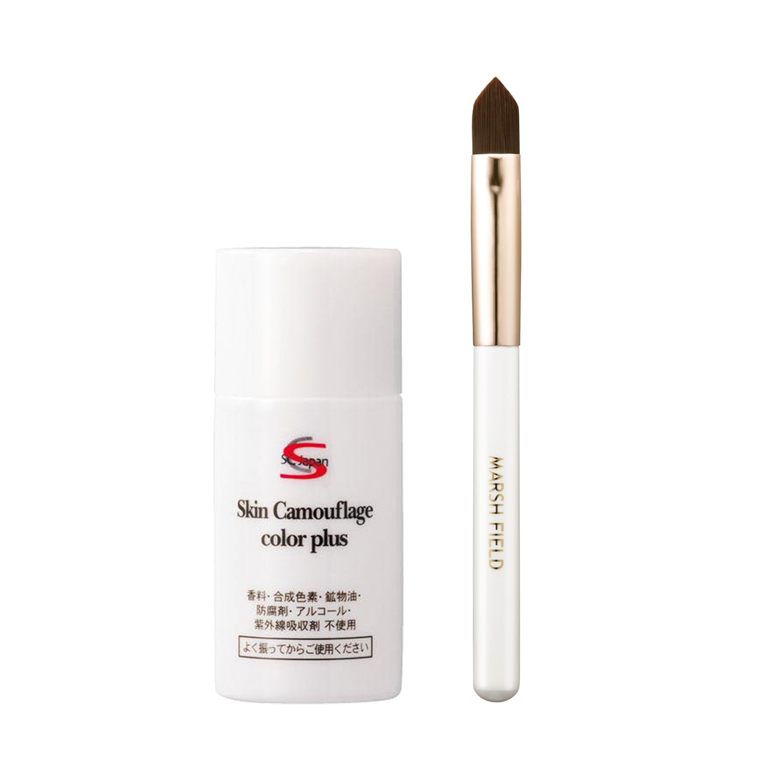 SC カラープラスは、マーシュフィールドが展開する白斑カバー用のアイテムの中でも、素肌に近い仕上がりが特長。先端が細くなっているコンシーラーブラシFを使うと、複雑な形の白斑でも、はみ出さずに細かく塗布することができます。
